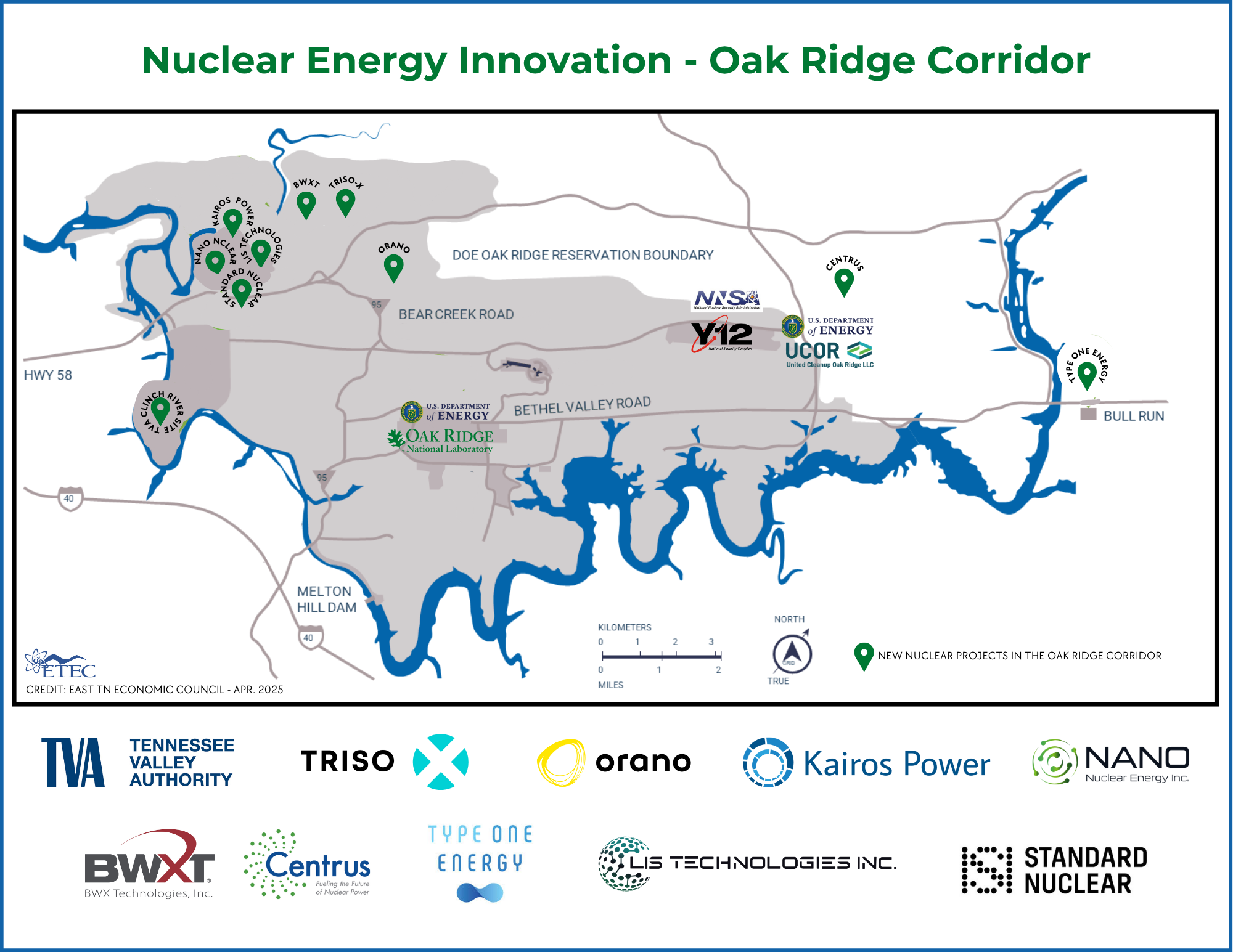 ETEC's nuclear industry webpages have been expanded and updated. The Nuclear Industry Hub page connects visitors to multiple page links labeled the 'CORE' of our region’s nuclear industry: Companies & Capabilities; Opportunities/Economic Development; Resources; and Educated Workforce. On these pages you can find all of the information, maps, and links you need to learn how Tennessee is Leading America’s Nuclear Energy Innovation in the Oak Ridge Corridor.