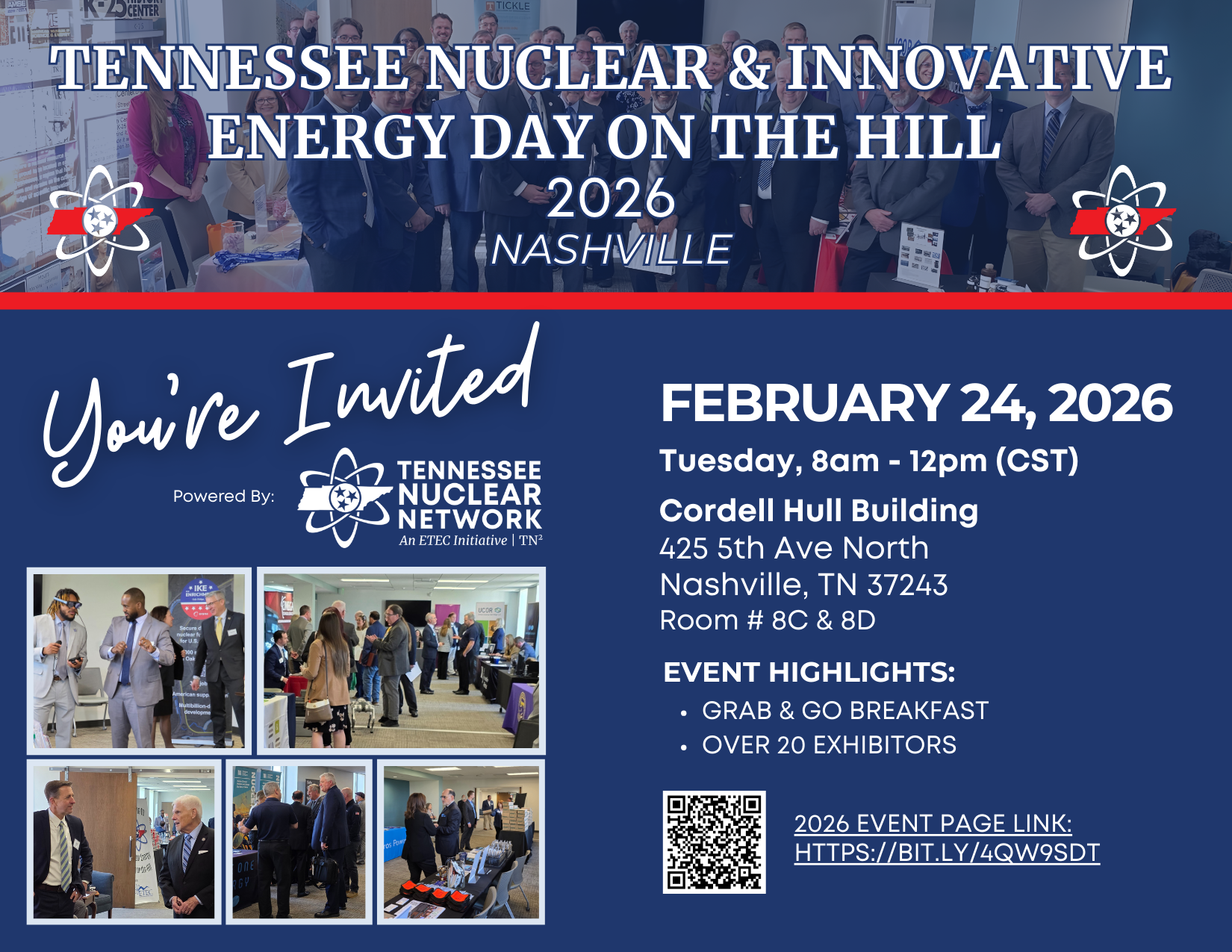 ETEC's 3rd Annual Tennessee Nuclear & Innovative Energy Day on the Hill brings together lawmakers and energy industry professionals to highlight the state's contributions to nuclear energy and innovative technologies. Click here for more information.