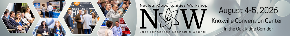 NOW is ETEC's Nuclear Opportunities Workshop, Tennessee’s premier nuclear industry conference focused on all things nuclear: fission, fusion, isotopes, environmental management, AI in nuclear, workforce and more. For the past seven years it has been a place to learn about industry developments, business opportunities, and advancements in research and technologies. Attendees can network and engage with experts from Tennessee Valley Authority (TVA), the U.S. Department of Energy (DOE) and its contractors, as well as a diverse array of small and large private-industry companies showcasing projects and technological capabilities. This includes interaction with students, interns, and postdocs as part of our efforts to grow the future workforce in Tennessee. Plus, there are opportunities for companies and organizations to promote their services during event.