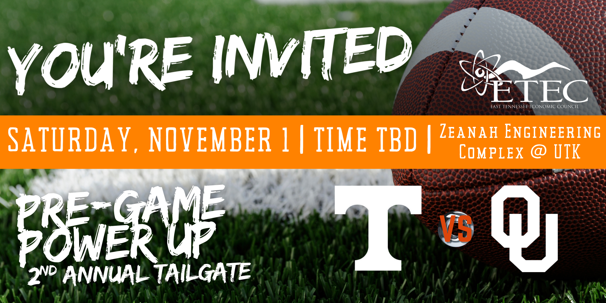Join ETEC members at the Zeanah Engineering Complex on the UTK campus for a fun Pre-Game Power Up tailgate before the Tennessee vs. Oklahoma football game on Saturday, November 1, 2025.