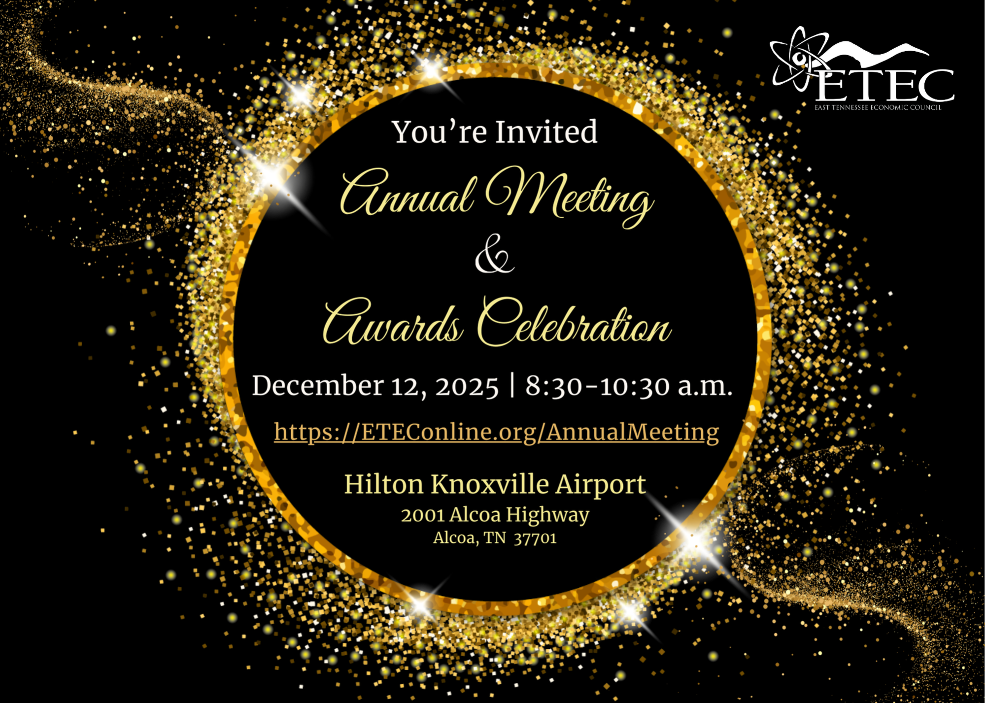 You are invited to attend the 2025 ETEC Annual Meeting & Awards Celebration on Friday, December 12, 2025; 8:30-10:30 a.m. at the Hilton Knoxville Airport in Alcoa, Tennessee.