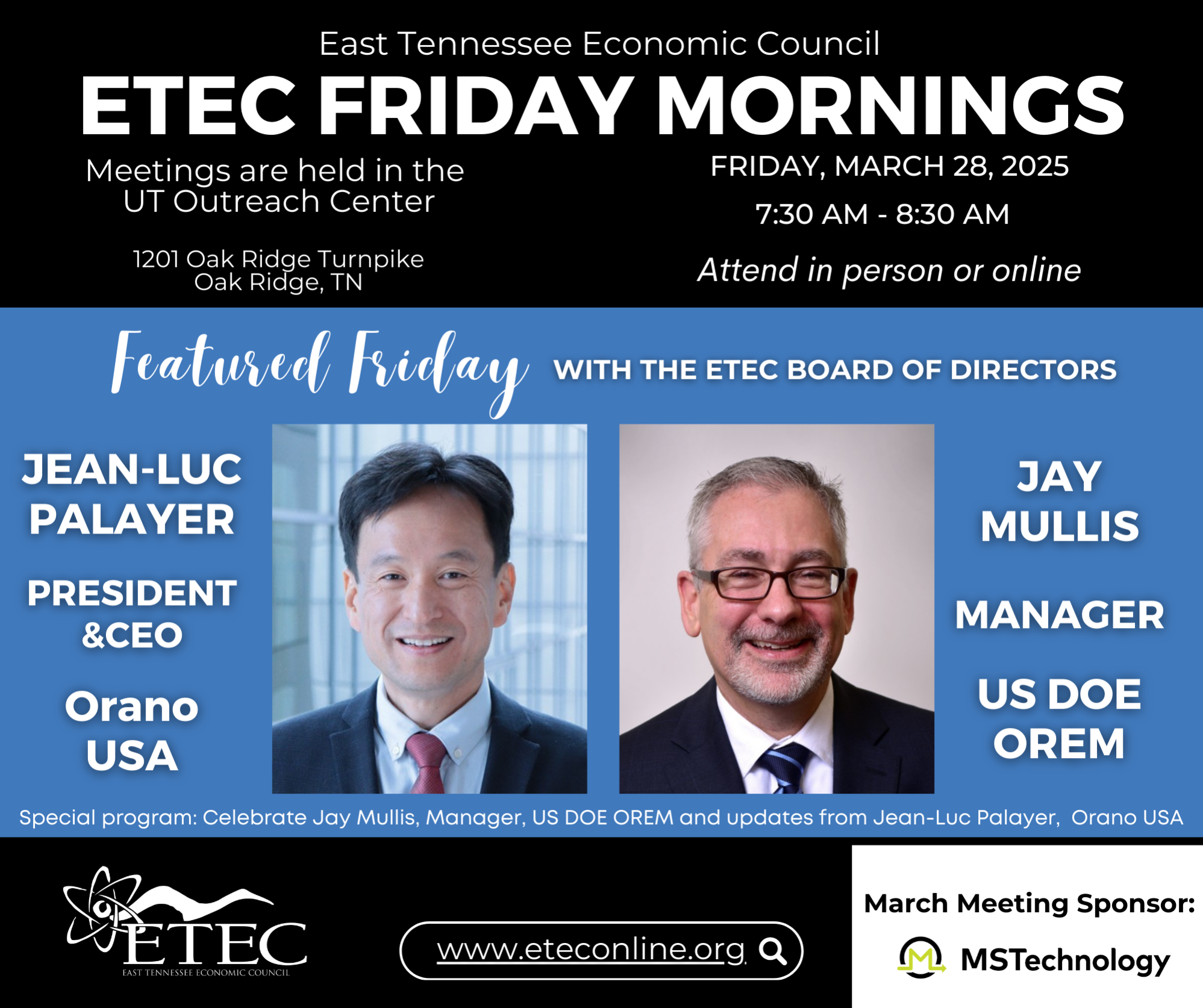 Join ETEC in-person or virtually on Friday, March 28, 2025 at 7:30am for a Featured Friday with the ETEC Board of Directors.