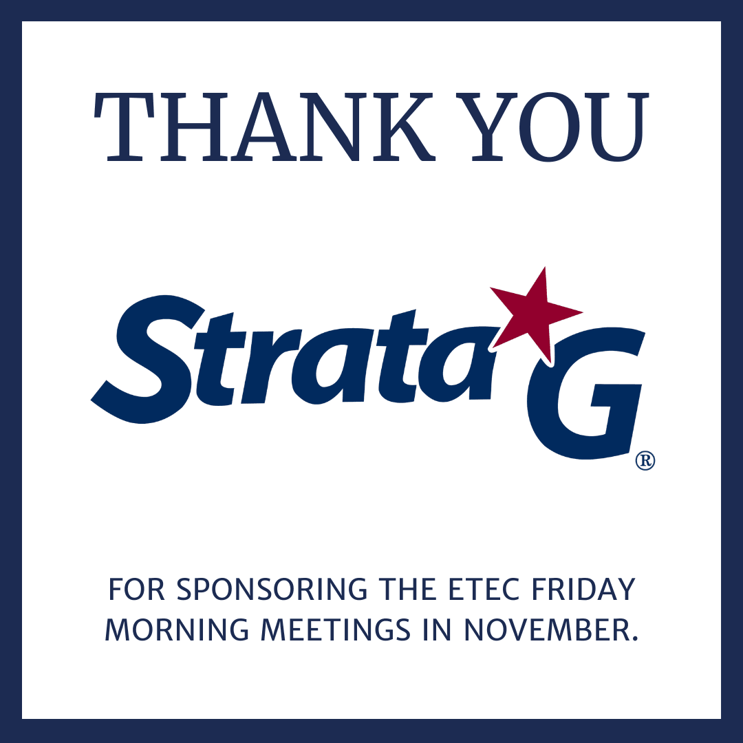 This month's ETEC Friday Morning Meeting Series are sponsored by Strata-G.