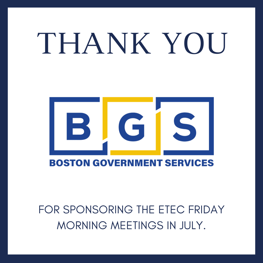 This month's ETEC Friday Morning Meeting Series are sponsored by Boston Government Services, LLC.