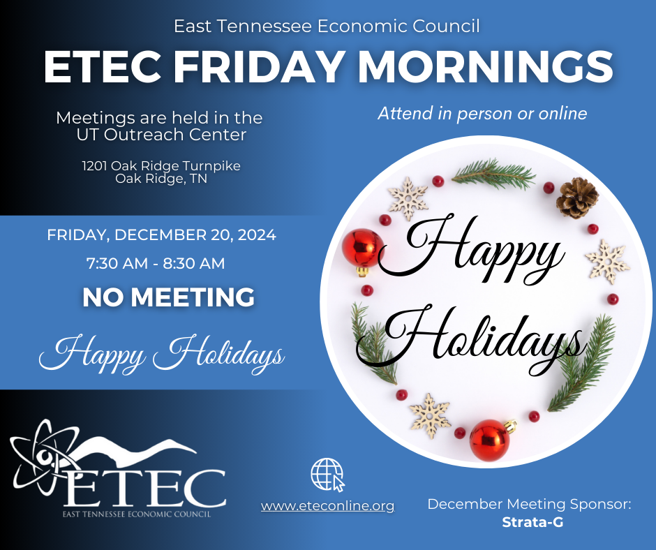 ETEC will not meet on Friday, December 20, in honor of the Holidays. See you next year, on Friday, January 10, 2025.