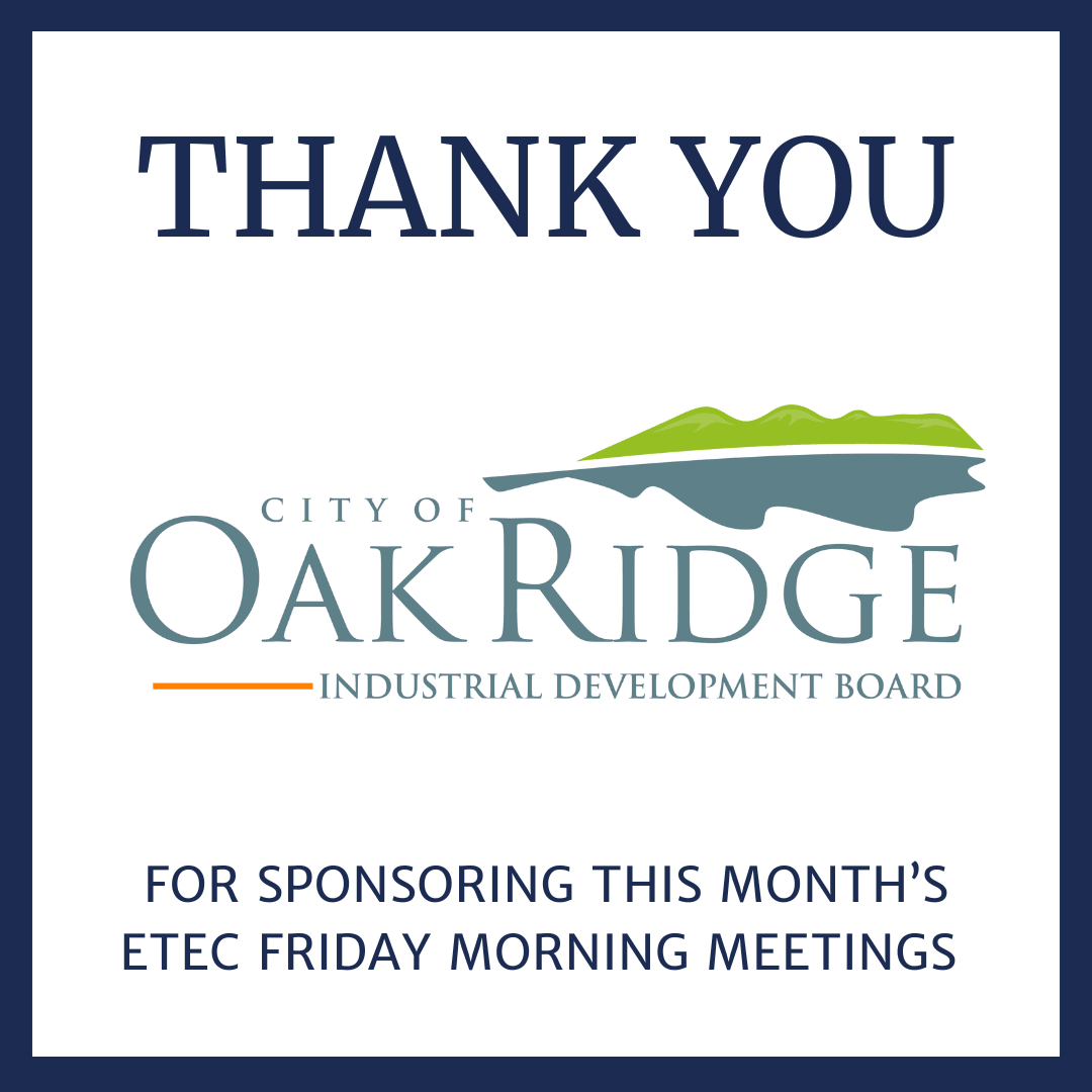 This month's ETEC Friday Morning Meeting Series are sponsored by the City of Oak Ridge Industrial Development Board.