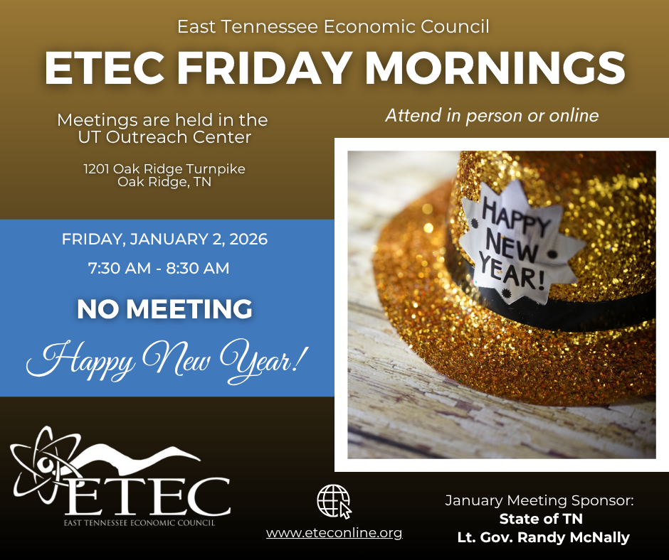ETEC will not meet on Friday, January 2nd, 2026, in honor of the holidays. We will resume our meetings on Friday, January 9th, 2026.