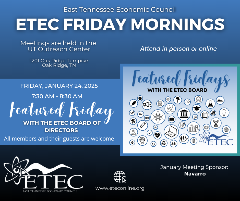 Join ETEC in-person or virtually on Friday, January 24, 2025 at 7:30am for a Featured Friday with the ETEC Board of Directors.