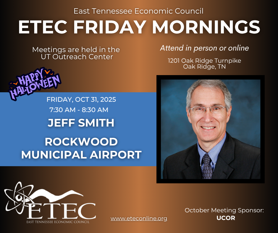 Join us FOR HALLOWEEN at ETEC in-person or virtually on Friday, October 3, at 7:30am to hear from Jeff Smith for a program about the Rockwood Municipal Airport. More information below.