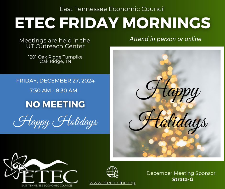 ETEC will not meet on Friday, December 27, in honor of the Holidays. See you next year, on Friday, January 10, 2025.