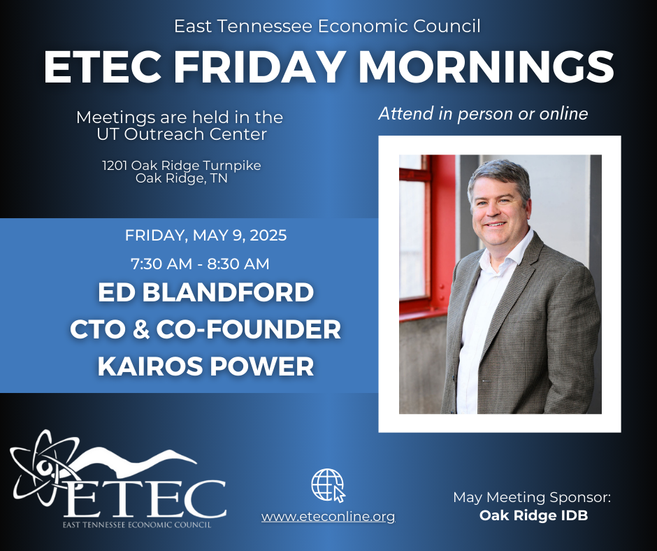 This month's ETEC Friday Morning Meeting Series are sponsored by City of Oak Ridge Industrial Development Board.