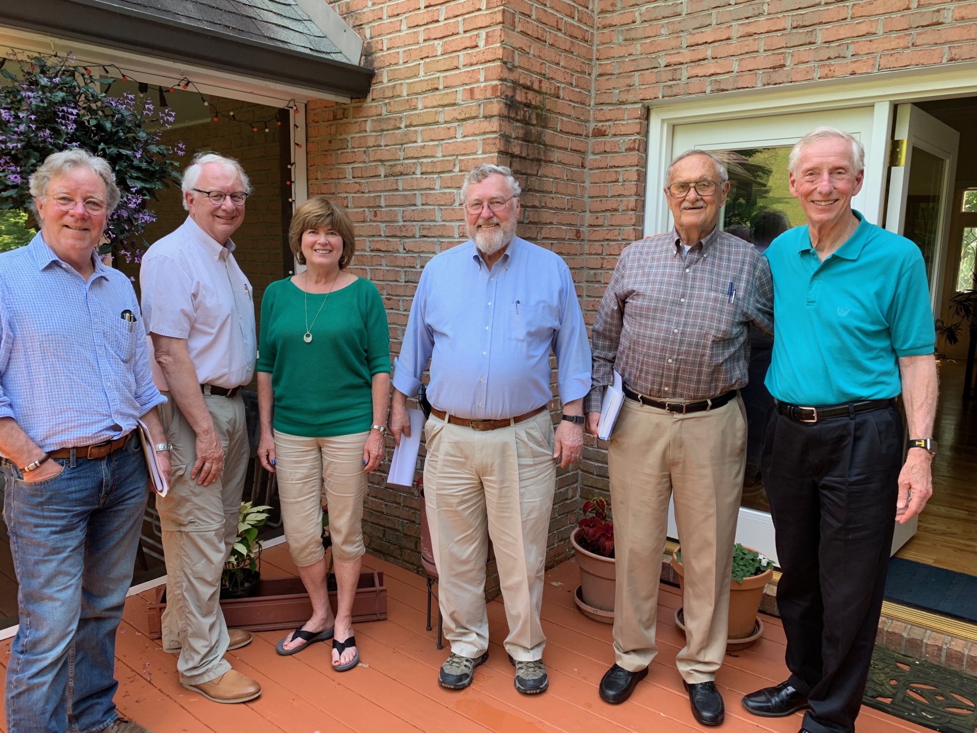From left to right are David Brill (editor), Al Ekkebus, Mary Zuhr (editor), Ray Smith, Bill Bugg, and Lee Riedinger. This was taken at Lee's house five years ago as they were starting this project.