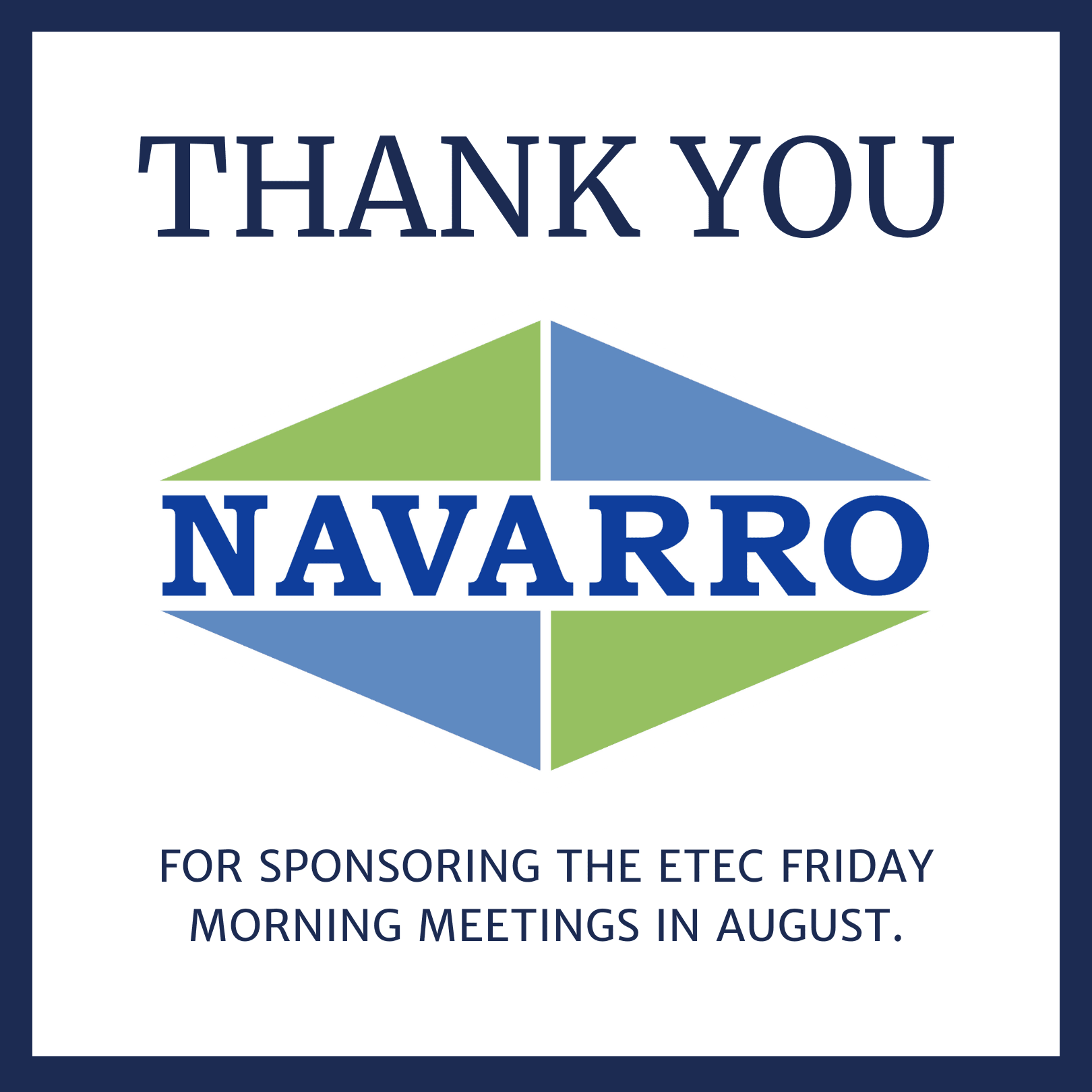 This month's ETEC Friday Morning Meeting Series are sponsored by Navarro.