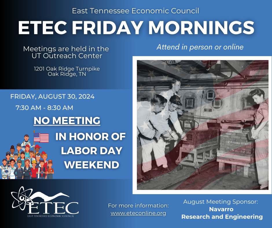 ETEC will not meet on Friday, August 30th due to the Labor Day holiday weekend! See you on Friday, September 6th.